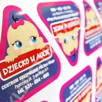 Drukujemy naklejki i etykiety samoprzylepne w dowolnych formatach i na różnych materiałach. Oferujemy tzn.: wlepki, naklejki ścienne i podłogowe, naklejki magnetyczne na samochody, naklejki adhezyjne – (również naklejki z transparentnym tłem) . Na życzenie docinamy do pożądanych kształtów i arkuszy.